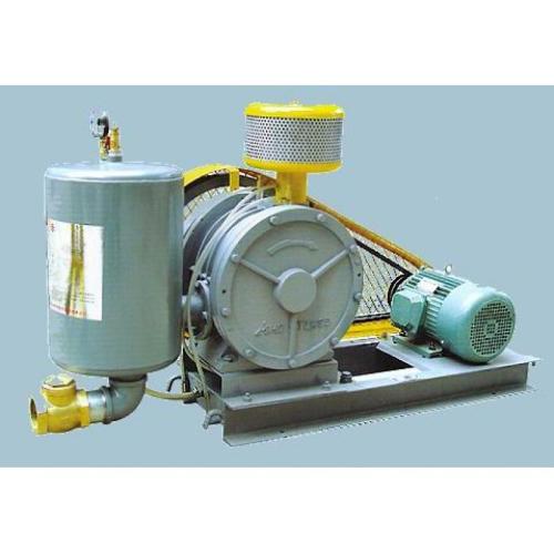 罗茨风机是一种容积式鼓风机。罗茨茨风机通过一对转子的“啮合”将进气口隔开,转子由一对同步齿轮传动,做反方向运动,将吸入的气体压缩并从吸气口推至排气口。气体到达排气口的瞬间,因排气侧高压气体的回流而被加压提升压力,从而完成气体输送。